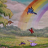 A flower field with a rainbow